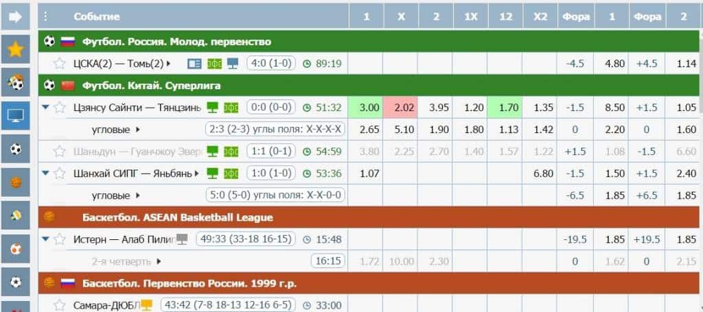 В разделе Live букмекер предлагает заключать пари на NBA, Суперлигу Российской Федерации, Евролигу и другие турниры. Роспись зависит от популярности соревнования. Пользователям доступны ставки на:
