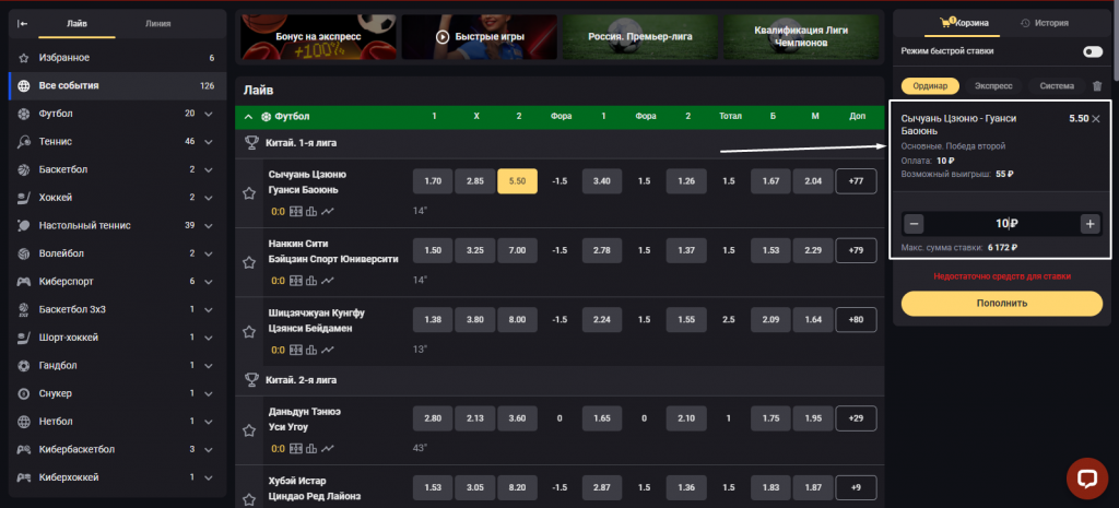 - вариация игры (лайв или прематч).