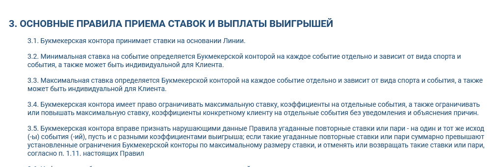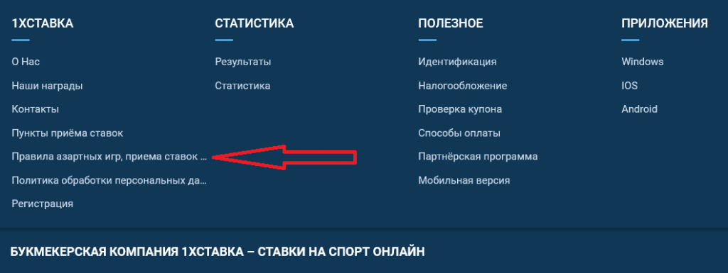 - Выбрать раздел «Правила приема ставок».