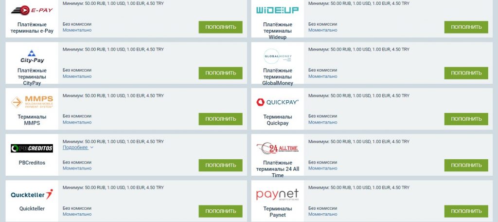 При этом букмекер не ограничивает максимальную сумму пополнения счета. Беттеры должны принимать во внимание, что ограничения на переводы может ввести платежная система или установить банк-эмитент.