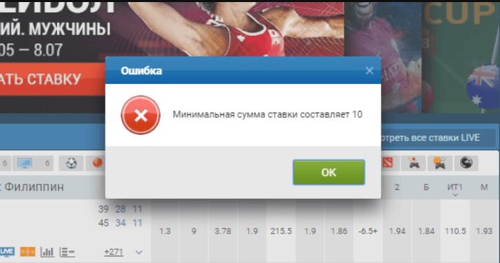 Разные требования к минимальной ставке установлены в разделе «Тото»: