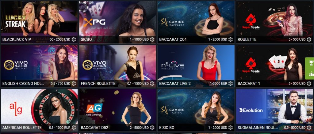 В разделе «Лайв-казино» минимум зависит от игры: от 5 до 3000 руб.