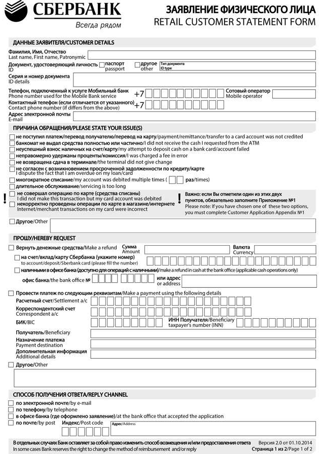 Заявление можно писать в свободной форме. Однако многие банки имеют образцы. Наиболее полный и понятный у Сбербанка.
