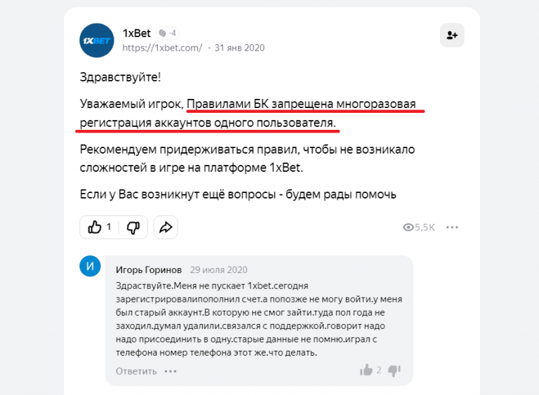 Обычно на сайте БК 1xBet проблем не возникает. Дело в том, что технически букмекер не ограничивает возможность создания еще одного профиля для ставок.
