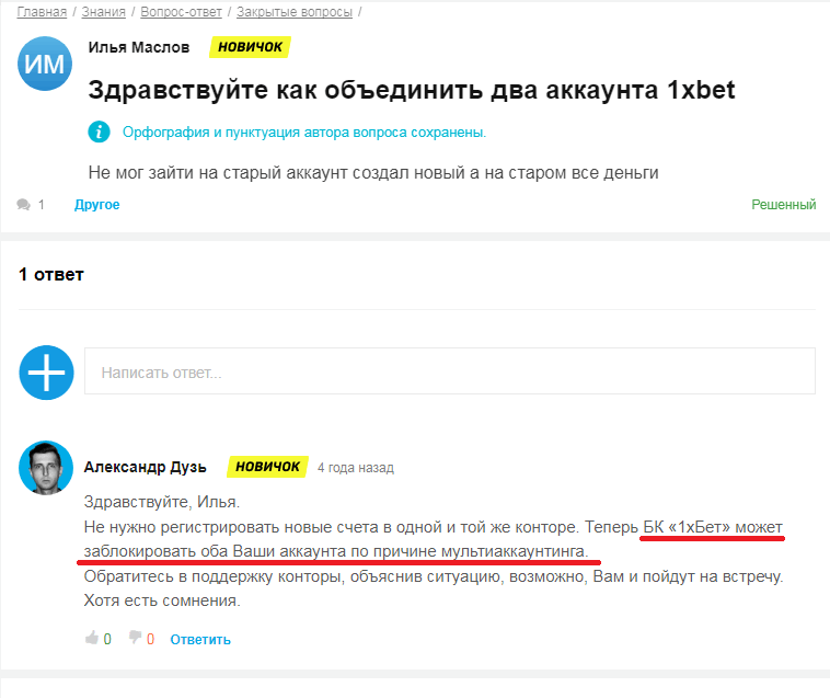 Уличение беттера в мультиаккаунтинге дает букмекерской конторе «1хБет» право: