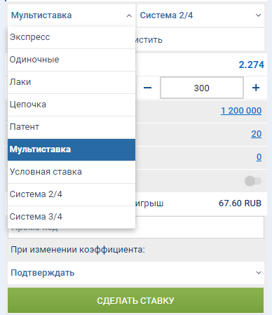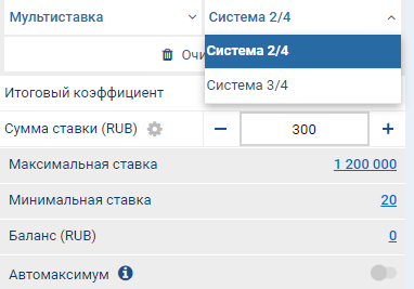 Фактически, мультиставка — это экспресс, состоящий из лобби и системы ставок. Но добавление лобби в купон не является обязательным. В этом случае мультиставка будет рассчитана, как выбранная система, состоящая только из блоков.