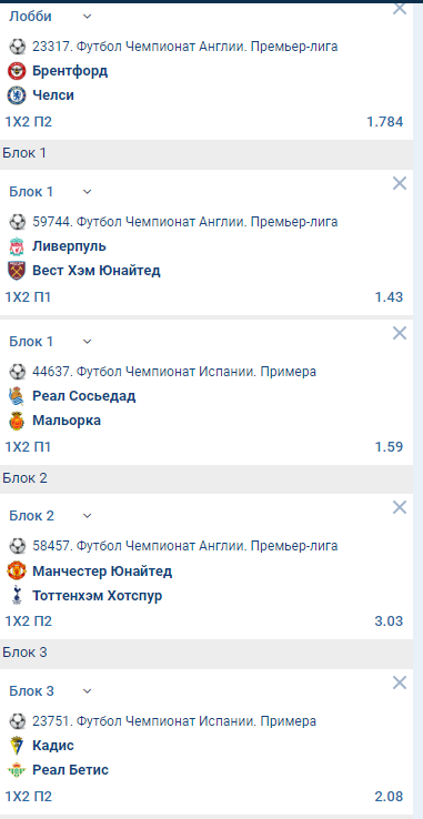 - Не стоит составлять в блоках большие экспрессы. Максимум два-три события. Большое количество исходов серьезно повышает риск проигрыша.
