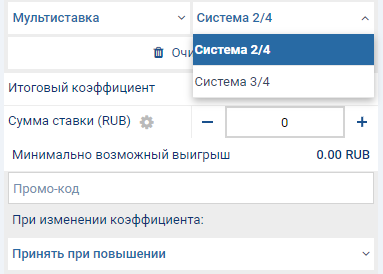 Сумма пари будет поделена между всеми экспрессами в выбранном типе системы.