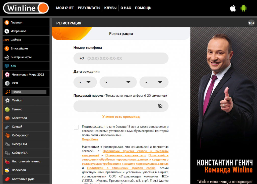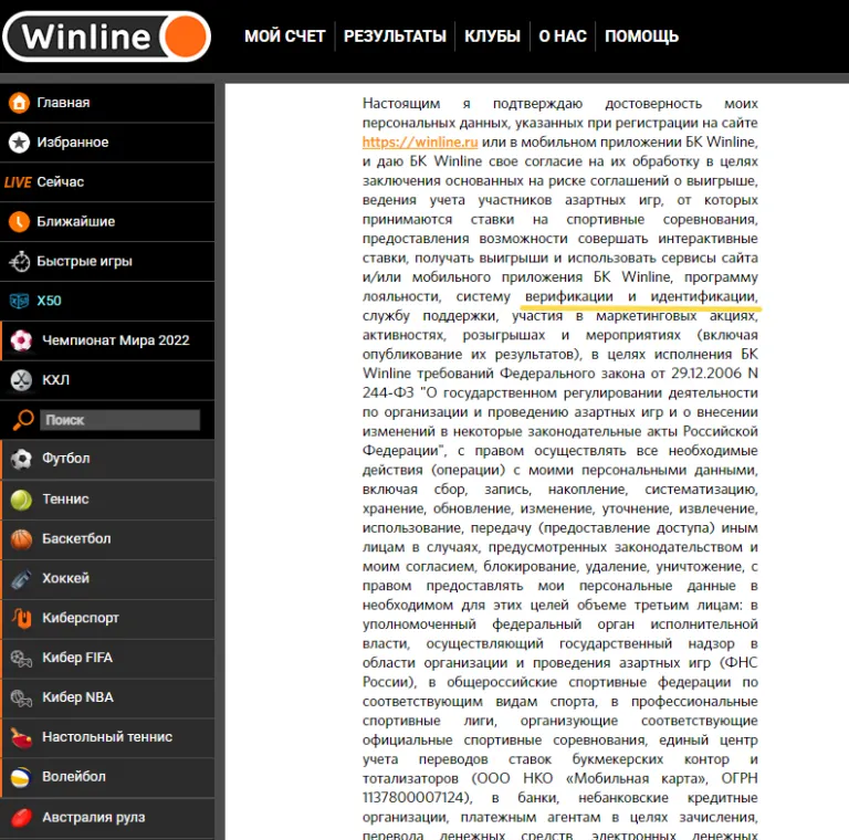 Легальная букмекерская компания Winline проверяет новых клиентов перед открытием счета.
