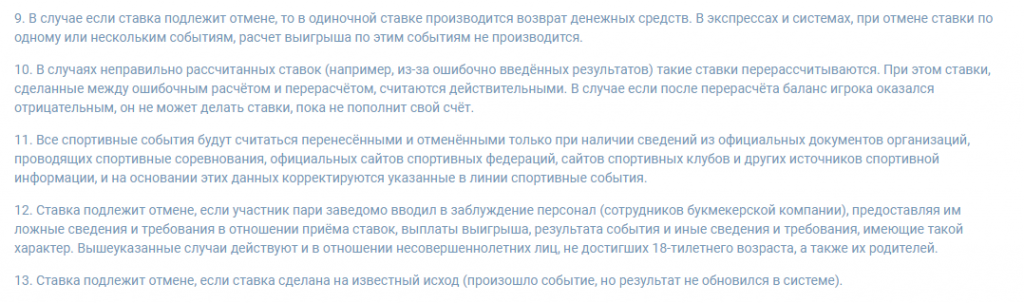 - Нечестная игра. Речь в первую очередь идет о пари на договорные матчи и послеголы, когда исход события игроку уже известен.