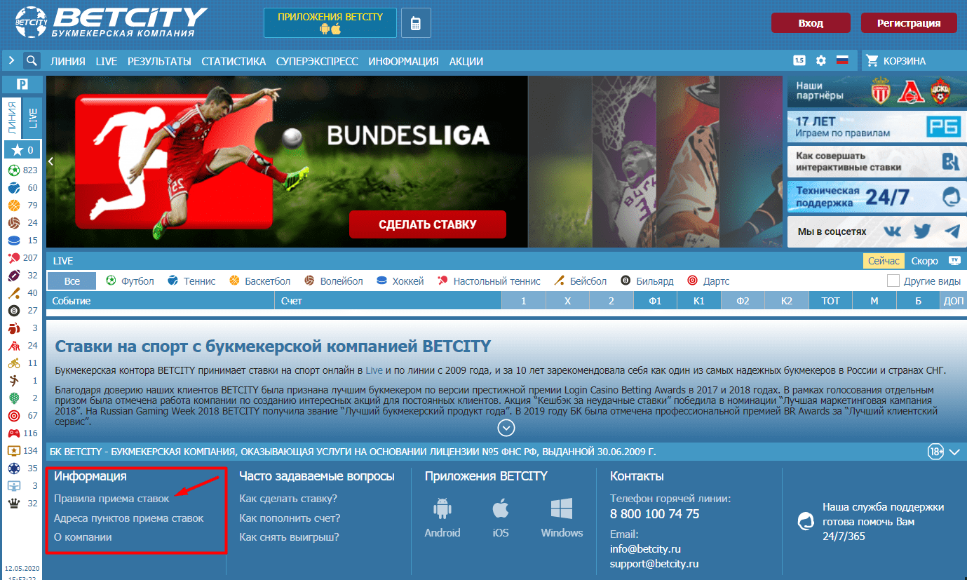 Регламент «Бетсити» предусматривает следующие правила: