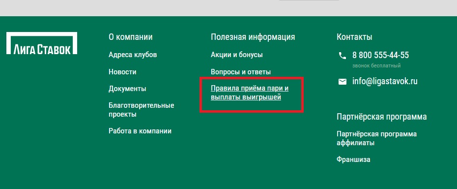 Стать клиентом букмекерской конторы Лига Ставок можно с помощью простых шагов: регистрации на сайте и ознакомления с правилами компании. Последний шаг многие бетторы пропускают, соглашаются с договором, не читая его. Незнание основных положений впоследствии может привести к возникновению спорных ситуаций при заключении пари, в некоторых случаях к блокировке аккаунта. Данная статья содержит краткое описание правил приема онлайн-ставок и выплаты выигрышей Лиги Ставок. Познакомиться с полным содержанием документа можно на официальном сайте букмекера в разделе «Полезная информация» или при регистрации аккаунта.