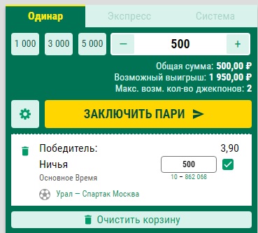 Отдельный вид — комбинационные пари, когда нужно спрогнозировать несколько исходов одного матча. Например, победитель + обе забьют.