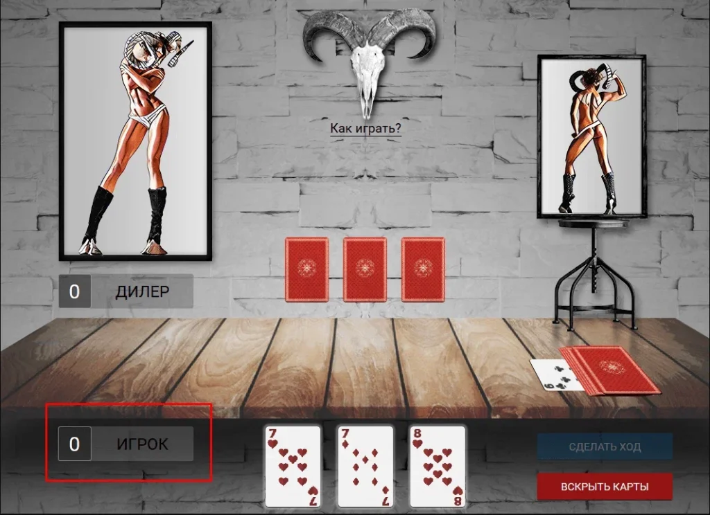 Если игрок не смог побить дилера, то он убирает столько карт рубашкой вверх, сколько не смог побить. При этом они будут учитываться при подсчете очков. Поэтому необходимо запоминать, какие карты лежат рубашкой вверх и считать сумму баллов.