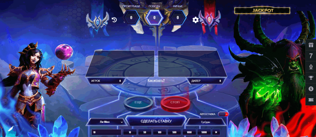БК 1xBet предлагает несколько типов интерфейса. Игроки могут выбирать между оформлением «Классика», «Новый стиль», «DOTA 21» и «HOTS 21». На ставки в «21 очко» это не влияет.