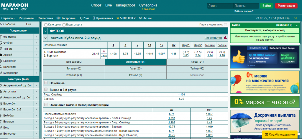 Расчет ставок в БК «Марафон»