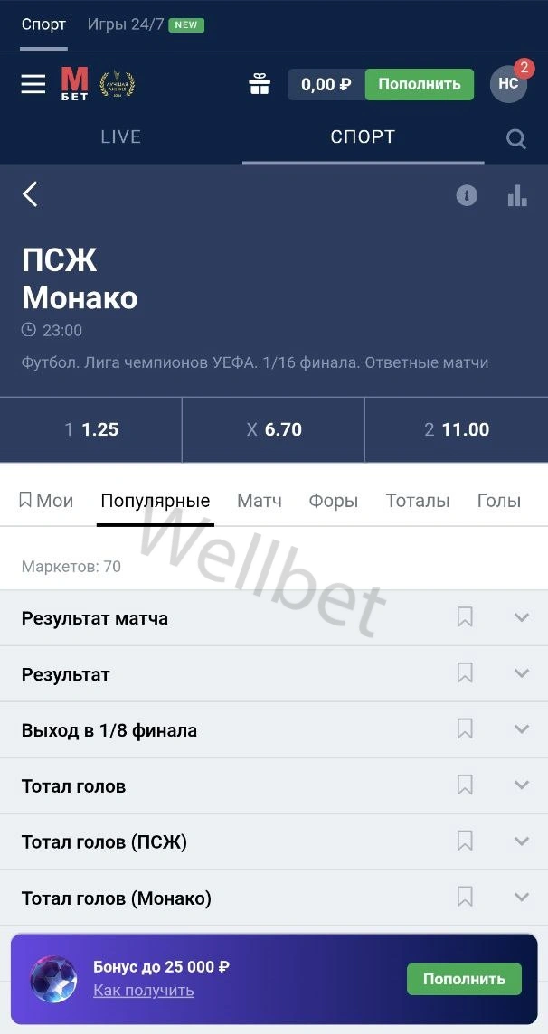 - Авторизоваться на БК «Марафонбет».