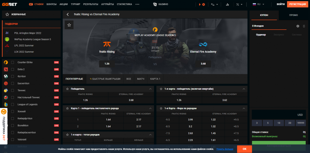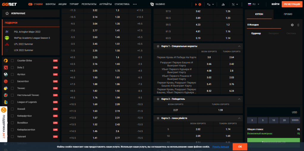 GGBet – ориентированная на киберспорт компания. Поэтому внушительную часть регламента конторы составляют особенности ставок по этим видам спорта. Рассмотрим на примере «золотого трио».