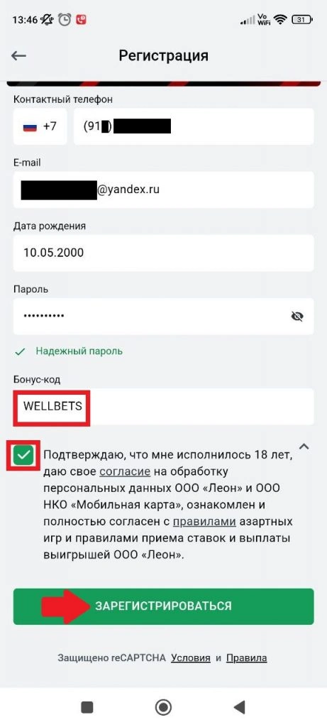 Для регистрации на сайте букмекерской конторы Леон необходимо: