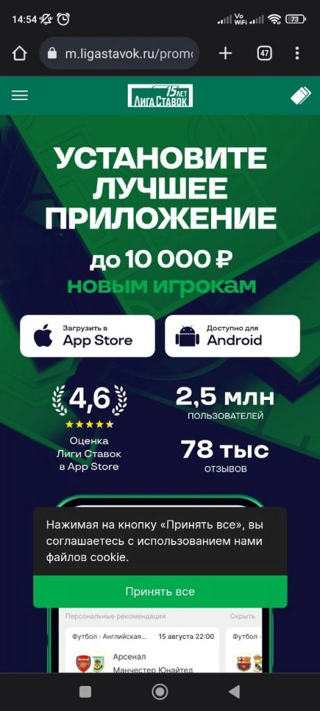 - Регистрация в «Лиге ставок» через мобильное приложение