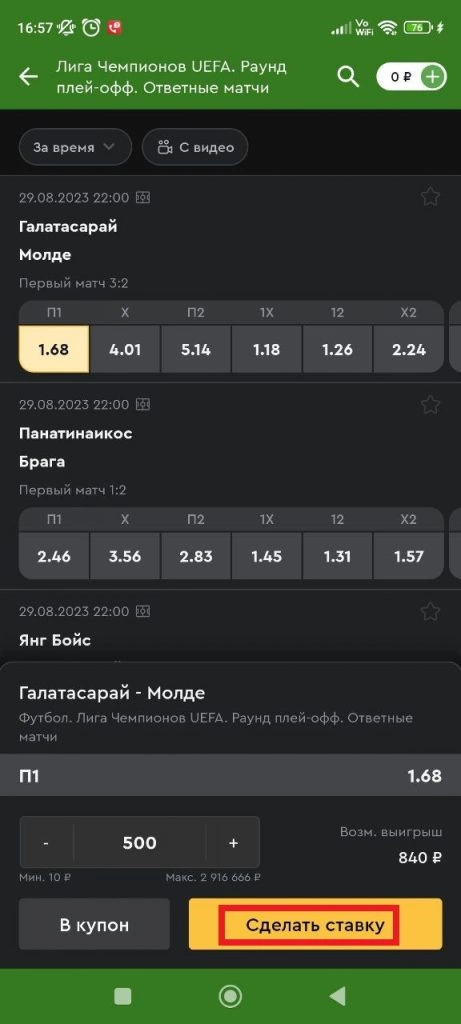 - открыть раздел «Лайв», «Линия» или «Ставки 24/7»;