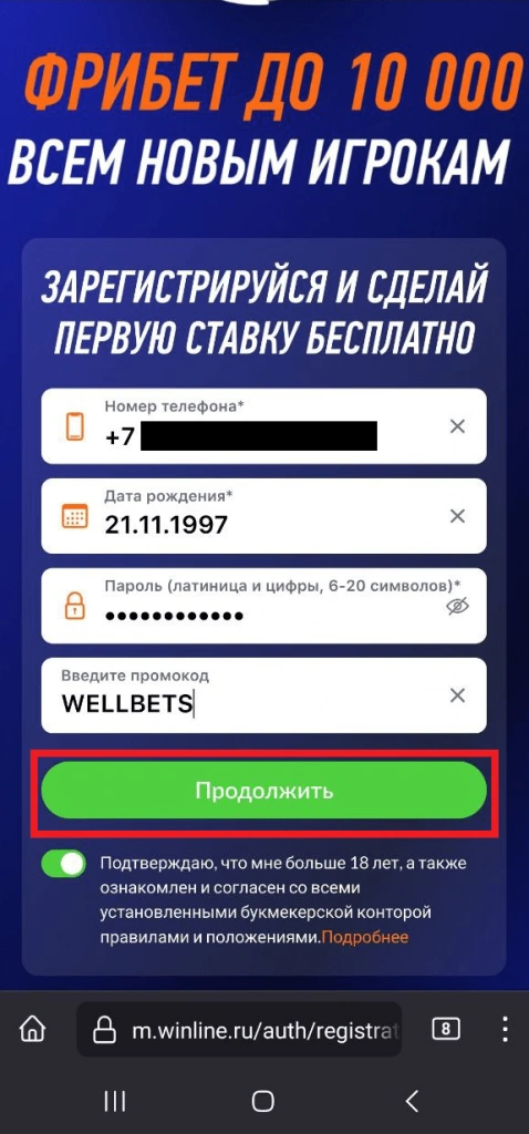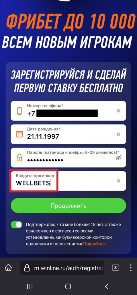 Как зарегистрироваться в мобильной версии «Винлайн»
