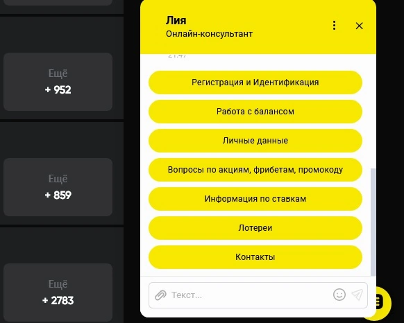 | Вопросы по правилам ставок или условиям | Онлайн-чат / Телефон |