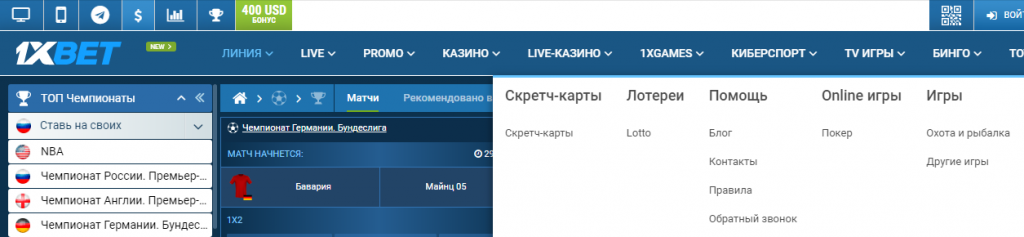 На официальном сайте букмекера 1Xbet хорошая роспись всех популярных турниров по 30 дисциплинам. В лайв-режиме и киберспорте клиенту доступна прямая трансляция матчей.