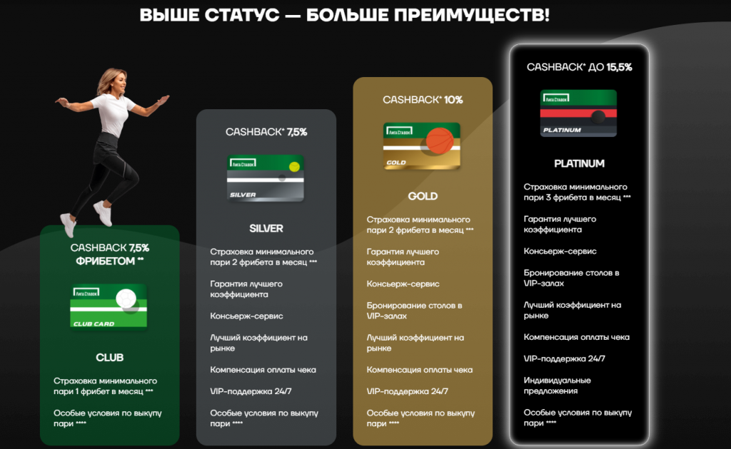 Для постоянной аудитории «Лига Ставок» проводит несколько акций. Главная — VIP-клуб. При достижении определенного оборота ставок беттеры получают премиальный статус, дающий различные привилегии, например, скидку в баре в наземных клубах БК и специальные лаунж-зоны. Кроме этого участники получают фрибеты и кешбэк до 15% на ставки.