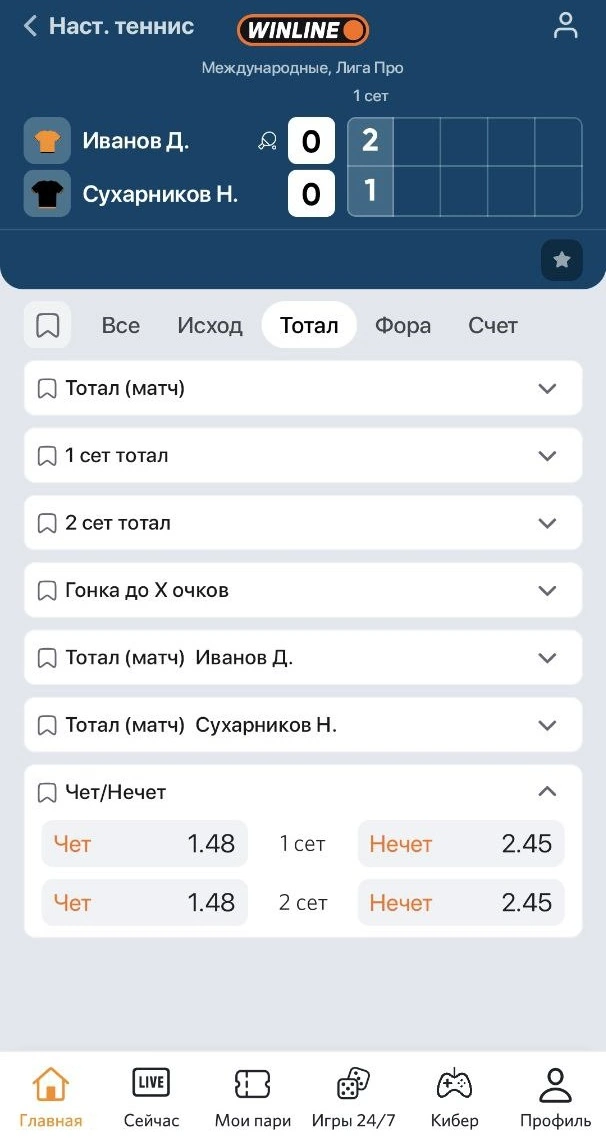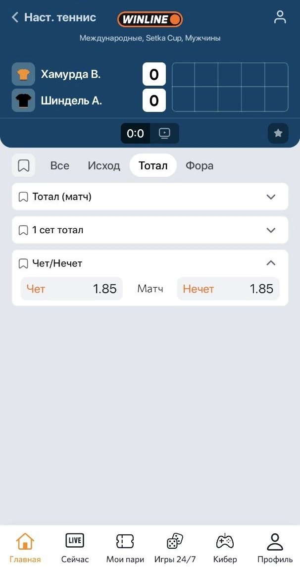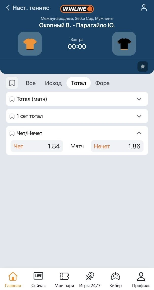 Что значит тотал чет/нечет в настольном теннисе