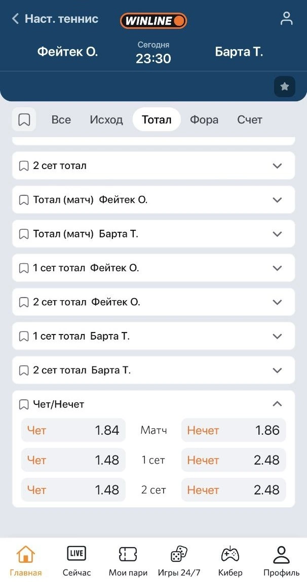 Виды тотала чет/нечет в теннисе