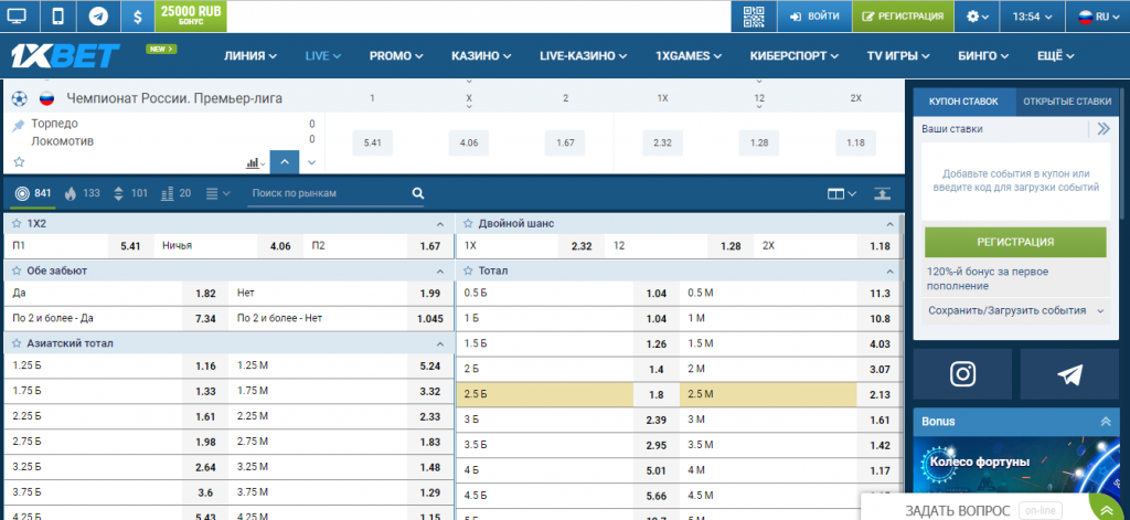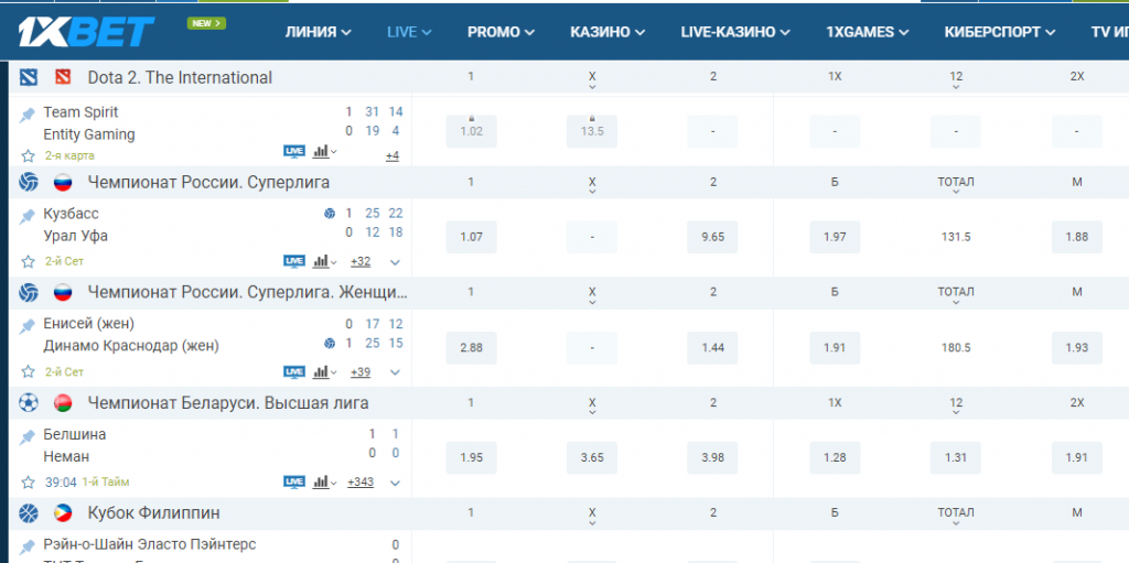 В конторе заключают пари на ведущие чемпионаты, на игры в низших лигах, а также на соревнования в Африке и Азии. Перед тем как сделать ставку в 1xBet в Live, оформляют купон и выбирают вид пари.