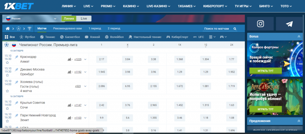 В таком режиме в 1xBet оформляют пари на 35 дисциплин. Линии этого букмекера охватывают региональные, молодежные, женские, профессиональные чемпионаты. Здесь также заключают пари на погоду и политические события.