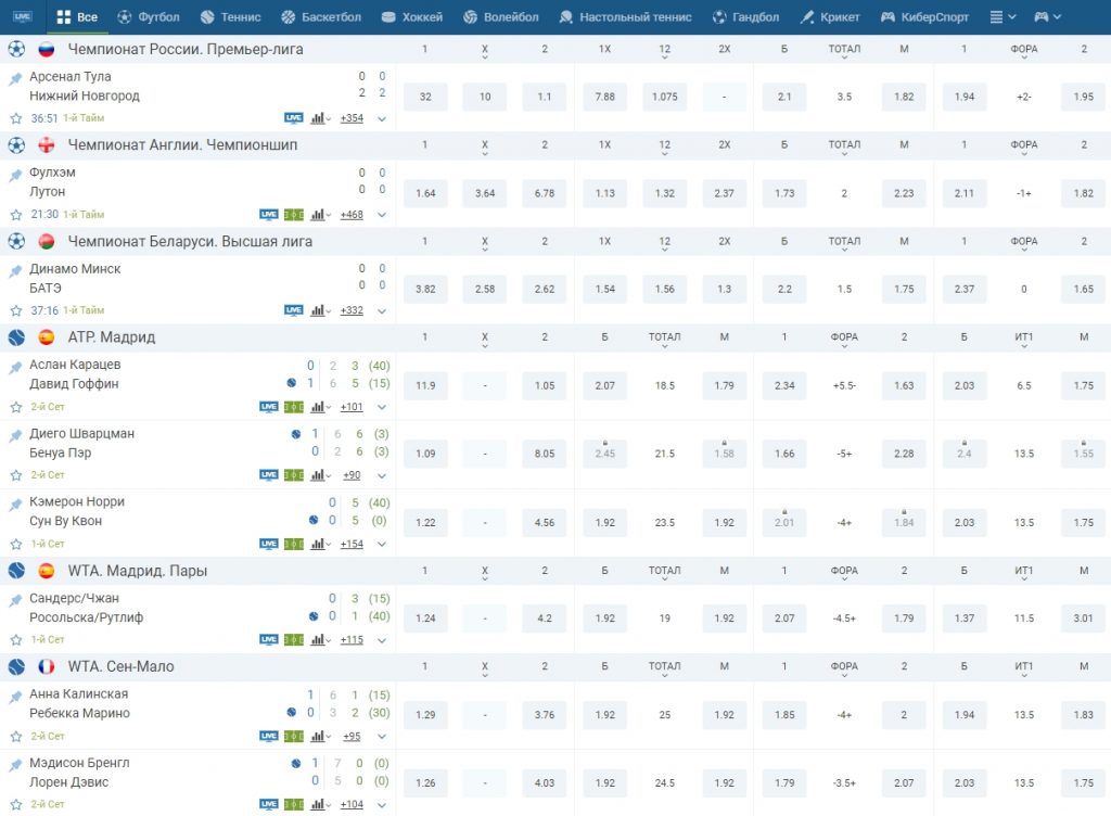 - Ставки с минимальным риском в режиме лайв