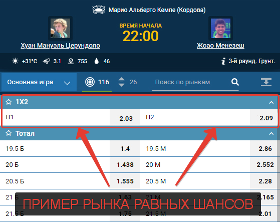 Для успешной игры на стратегии Лабушера подойдут только котировки выше 2.00. Предпочтительно выбирать ставки на равные шансы. Это пари, в которых возможно 2 исхода. Например: