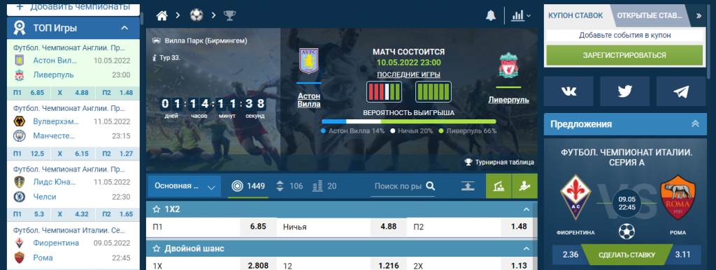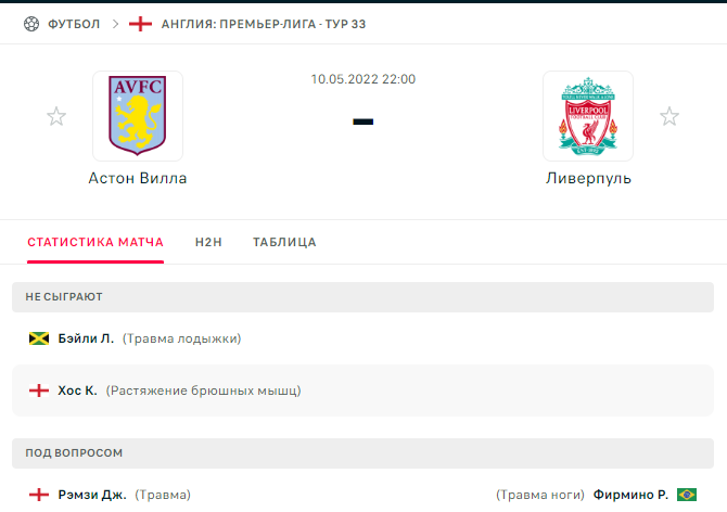 Система «Пророк» в ставках говорит, что матч «Астон Вилла» против «Ливерпуля» закончиться со счетом 1.15:1.65. После округления получаем наиболее вероятный результат на уровне 1:2.