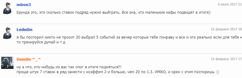 Комментариев о стратегии мало. Большинство отзывов негативные. Людям модель не нравится из-за низких коэффициентов. Выйти в плюс по таким пари, ставя на сайтах легальных букмекеров, действительно сложно. Без хорошего прогнозирования не обойтись.