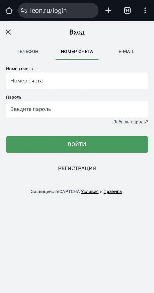 Большинство игроков не использует вход в личный кабинет по номеру счета Леон. Но этот метод удобен, если у пользователя возникли проблемы с телефоном или e-mail.