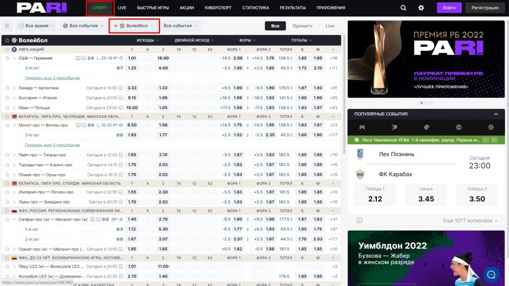 Как сделать ставку на волейбол в букмекерской конторе Pari