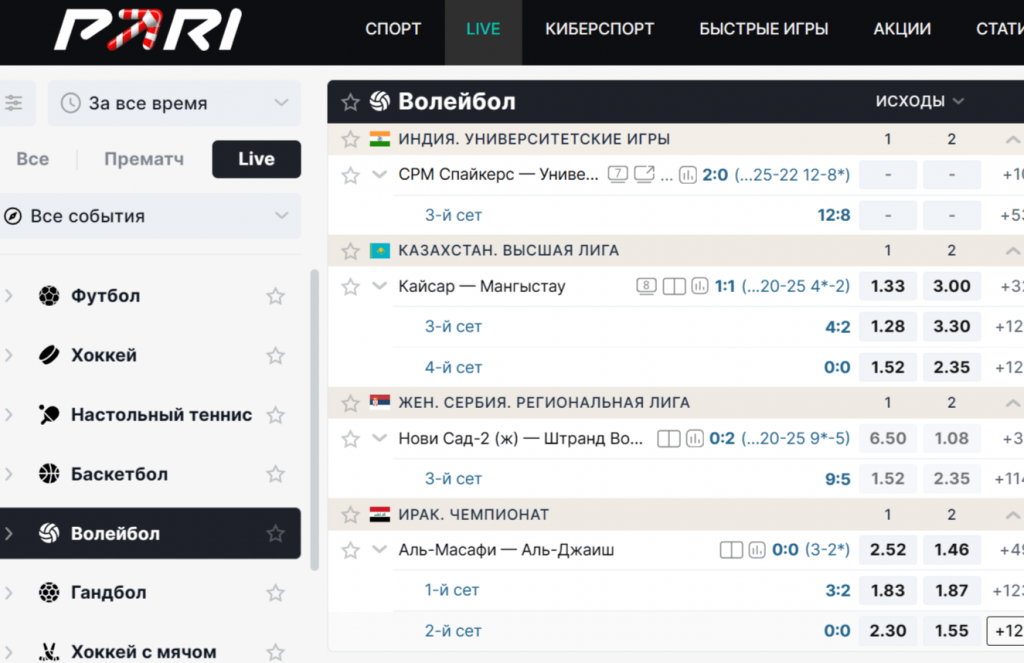 Волейбол в БК Pari: лайв, результаты, стратегия