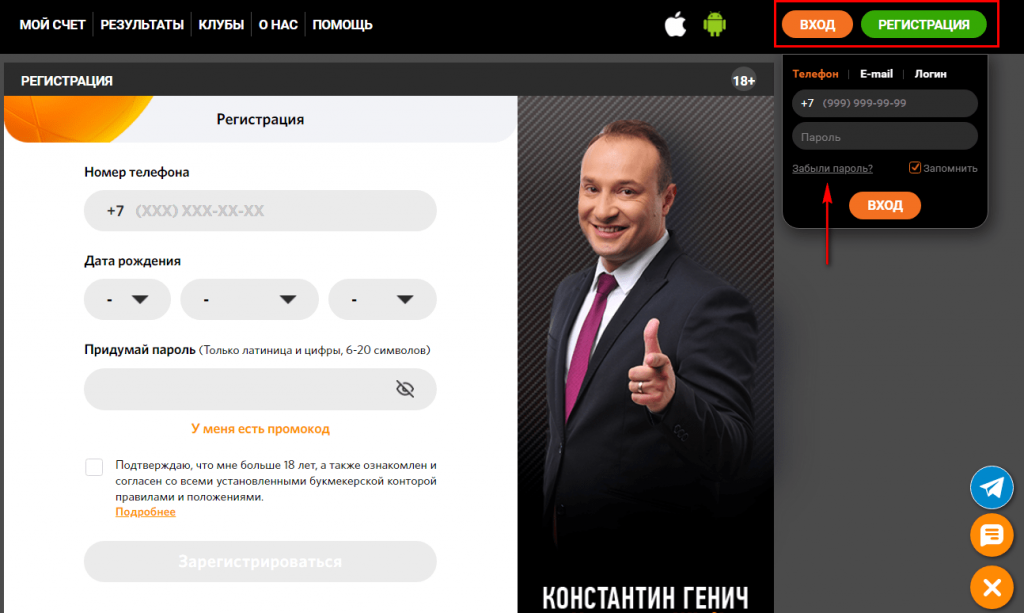 Для восстановления пароля в БК «Винлайн» кликайте по ссылке «Забыли пароль?». Опция присутствует на формах авторизации и регистрации. А чтобы не проходить процедуру повторно, новые данные стоит сразу куда-нибудь записать.
