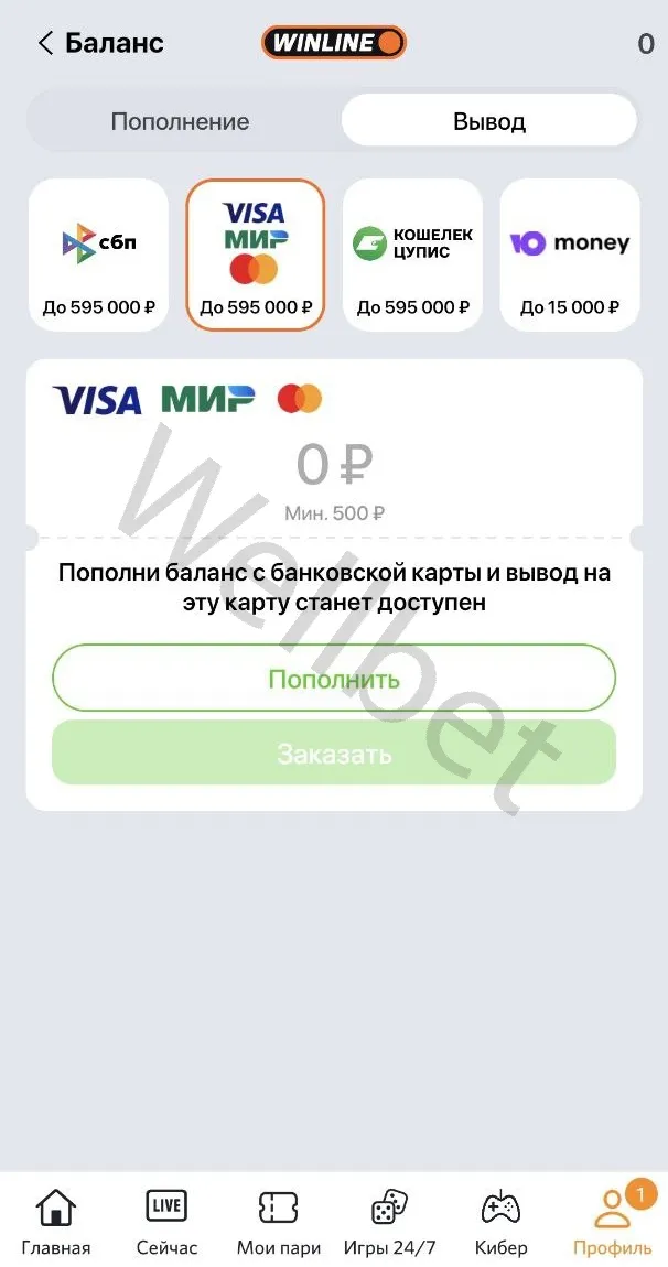 При отсутствии махинаций на аккаунте Winline позволяет выводить деньги на электронный кошелек или банковскую карту.