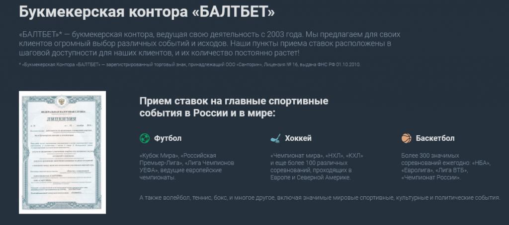Букмекерская контора «Балтбет» — о компании