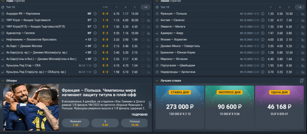 Маржа в прематче составляет 4,1–8,6%, в лайве несколько выше – от 5,7% до 10,3%.